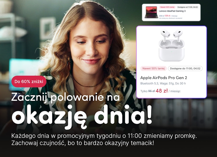 Z Plenti Starter łatwiej zacząć! Darmowa dostawa, zwrot bez czyszczenia i rozszerzona ochrona sprzętu – wszystko przez pierwsze dwa tygodnie. Wynajmuj bez stresu, my ogarniemy resztę.