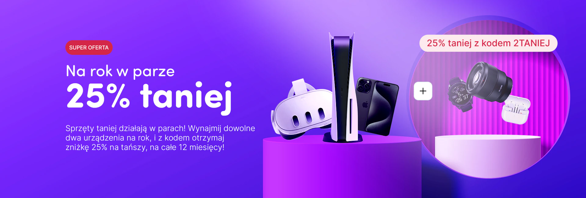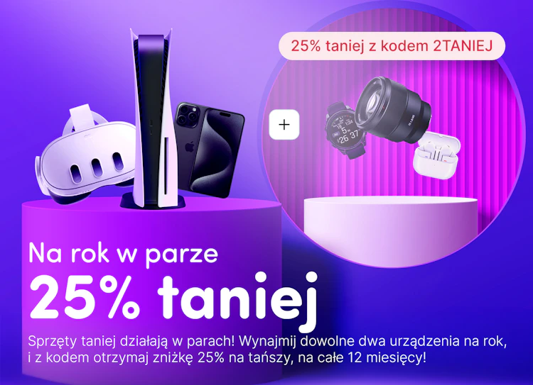 Z Plenti Starter łatwiej zacząć! Darmowa dostawa, zwrot bez czyszczenia i rozszerzona ochrona sprzętu – wszystko przez pierwsze dwa tygodnie. Wynajmuj bez stresu, my ogarniemy resztę.